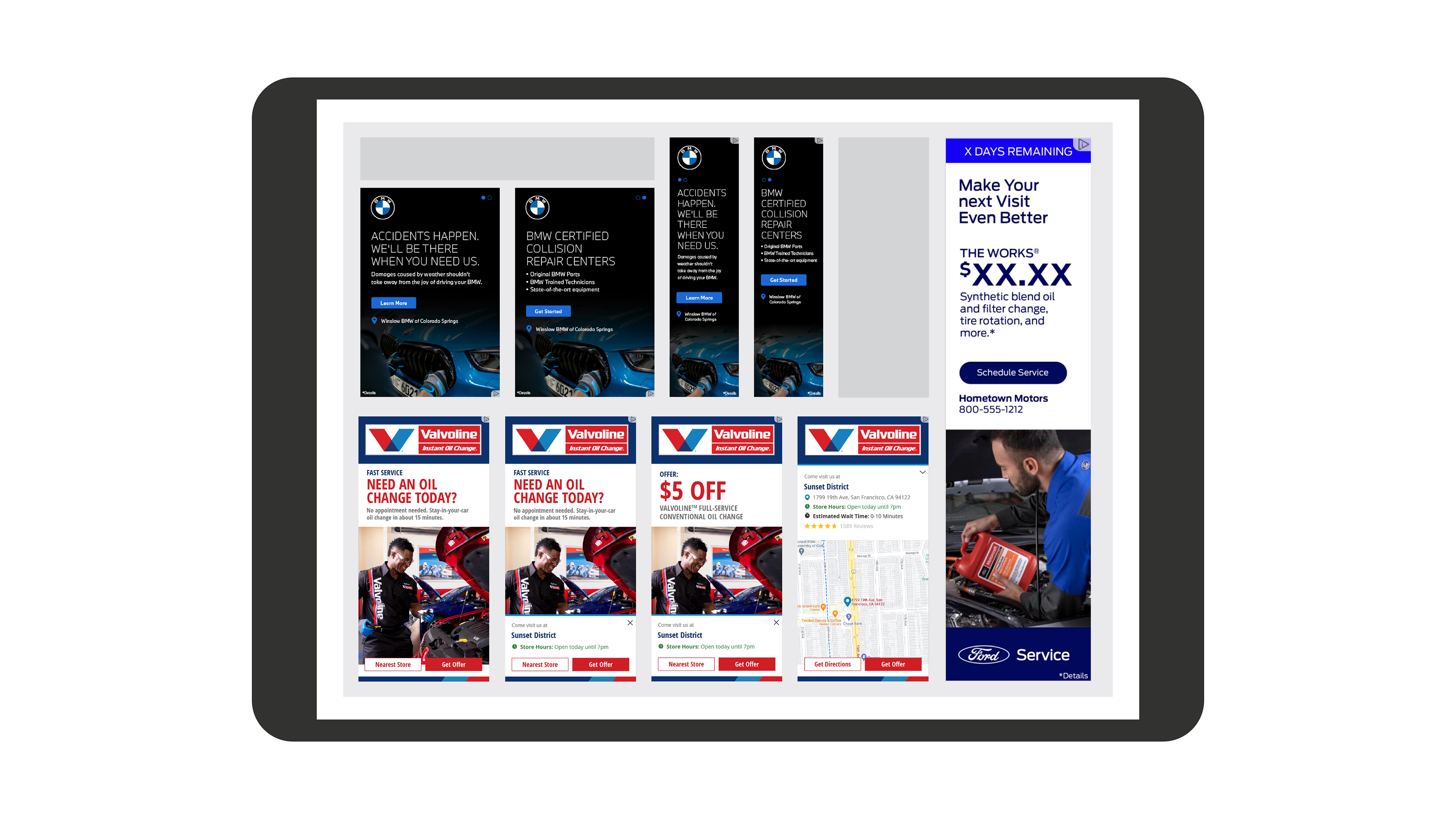 I worked with a handful of auto clients as well. Below are a few single and multi-framed examples from BMW, Valvoline, and Ford.